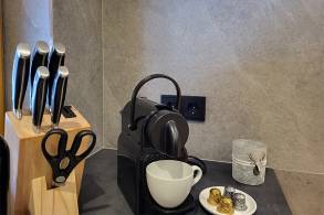 • voll ausgestattete Küche mit Cerankochfeld, Geschirrspüler, Nespresso- Kaffeemaschine, Backofen, Wasserkocher, Toaster, Eierkocher, Kühlschrank mit Gefrierfach u.v.m.